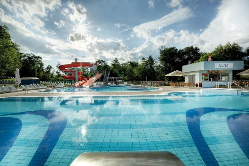 A termálfürdő nemcsak az idősebbeknek ajánlott, számos, gyerekeknek kialakított attrakcióval is rendelkezik. Ugyanakkor a víz gyógyhatásai vitathatatlanok: a mozgásszervi és idegrendszeri megbetegedésben szenvedők tüneteit enyhíti. A gyógyfürdő forrásának 30 Celsius fokos vize ásványokat, klórt, nátriumot, ként és kalciumot tartalmaz. Középkelet-Európa egyetlen gyógyvize, amely egyszerre képes gyógyítani a szív- és érrendszeri, valamint a mozgásszervi problémákat. A víz kiválóságának bizonyítéka, hogy a helyi kénes ásványvizet 1909-től 1924-ig palackozták és exportálták.