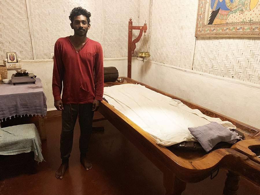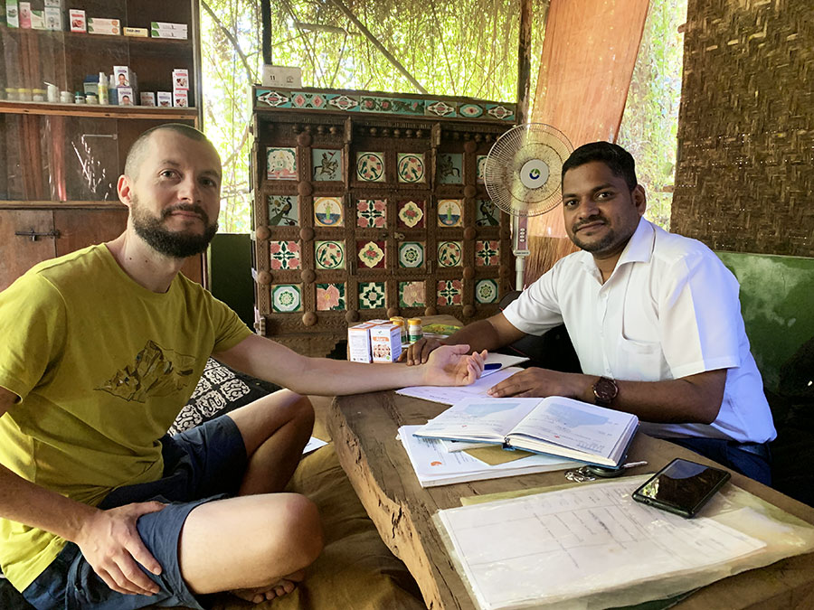 A központ Ayurveda gyógy- és wellness centrumként is működik. Akinek ideje engedi, két-három hetes Panchakarma-tisztító, egyensúlyba hozó, megújító, megfiatalító kúrán is részt vehet. A kezelés a helyi ájurvéda orvos konzultációval kezdődik, akit kíváncsiságból mi is meglátogattunk. A húsz perces diagnosztika alatt megkérdezi, milyen problémára keresünk megoldást, közben figyeli a beszédünket és a megjelenésünket. Olvas továbbá a nyelvünkből, megvizsgálta a szemünket is. Végül megfogta három ujjal a pulzusunkat, hogy megállapítsa, egyensúlyban vannak-e bennünk az elemek. Az ayurveda orvoslás alaptézise szerint akkor van egészség, ha a három dósa (vata, pitta, kapha) és az azokat alkotó öt alapelem (levegő, éter, tűz, víz, föld) egyensúlyban van.