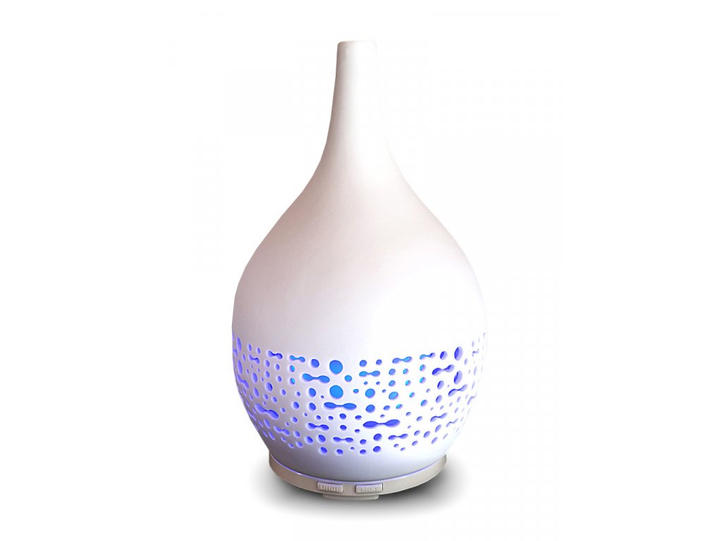 Az ultrahangos aroma diffúzor ízléses dekoráció minden helyiségben. Modern külsőt és légkört biztosít a masszázs vagy kozmetikai szalonoknak. A hétféle színárnyalatú változó megvilágításnak köszönhetően fényterápiás célokra is használható.