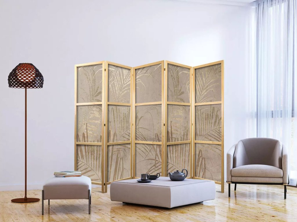 Fabulo 5 részes fa paraván - Arany pálmák 172 x 225 cm | nyomtatás a paraván egyik oldalán