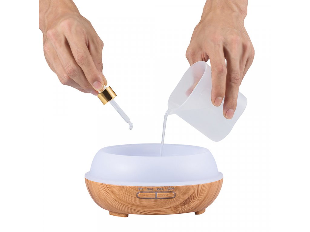 Az ultrahangos aroma diffúzor ízléses dekoráció minden helyiségben. Modern külsőt és légkört biztosít a masszázs vagy kozmetikai szalonoknak. A hétféle színárnyalatú változó megvilágításnak köszönhetően fényterápiás célokra is használható.