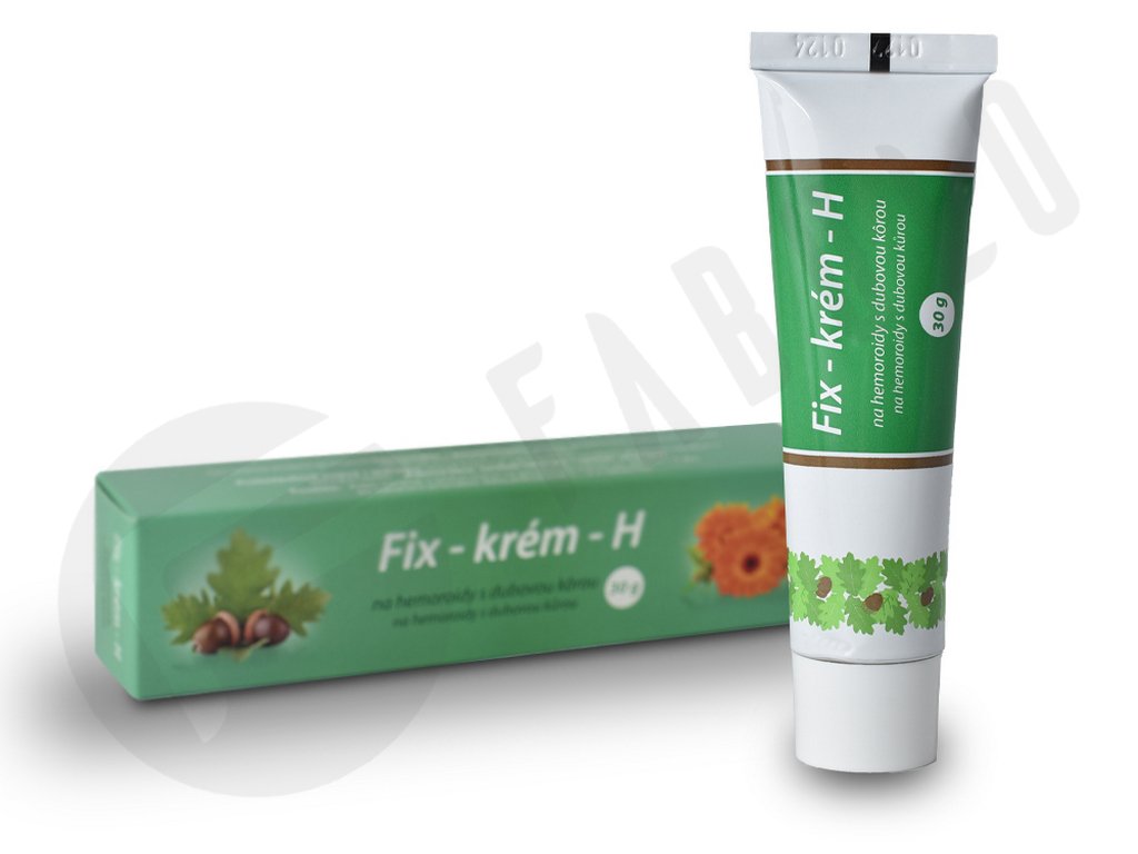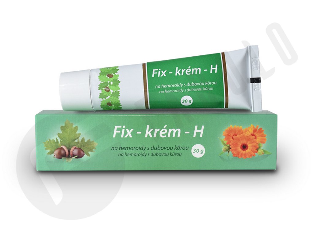 Nagy arányban tartalmaz tölgyfakéreg, körömvirág és kakukkfű gyógynövénykivonatokat. A krém kámfort is tartalmaz, amely erős fájdalomcsillapító és fertőtlenítő hatással rendelkezik. A Fix krém H enyhíti az irritációt, viszketést és fájdalmat.