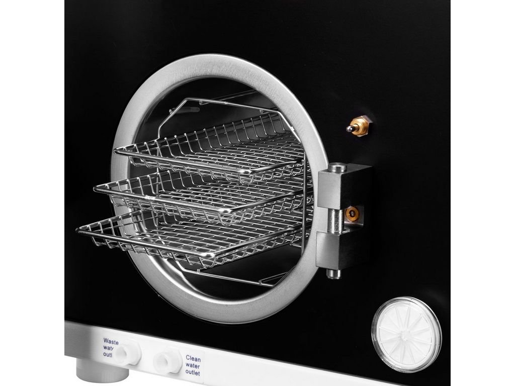 A prémium kivitelezésű sterilizáló készülék beépített hőnyomtatóval rendelkezik. A 10 teljesen automatikus program, a kiváló minőségű baktériumszűrő, az LCD képernyő, a dupla ajtózár és az USB-kimenet teszi ezt az autoklávot rendkívül hatékonnyá. A felsorolt és számos más funkciójának köszönhetően a sterilizálás egyszerű, gyors és mindenekelőtt hatékony folyamattá válik.